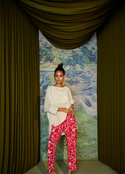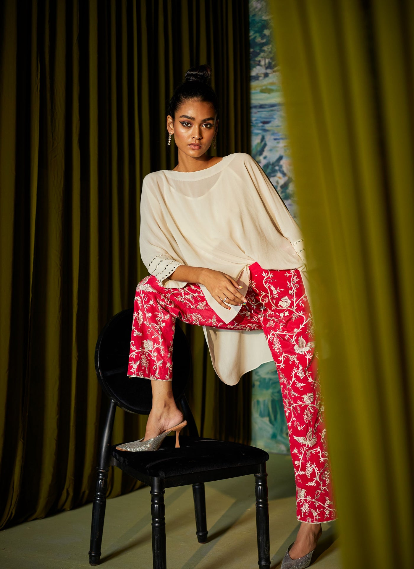 Cuff Sleeves Cape Top with Mirror and Beadwork