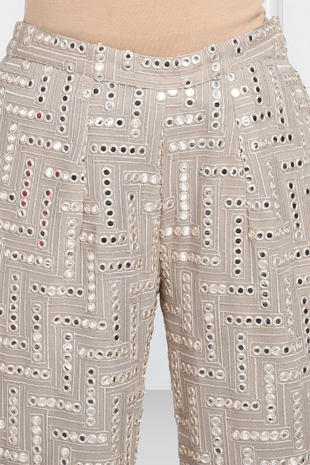 Details: Palazzos in Geometrical Pattern Mirrorwork Fabric