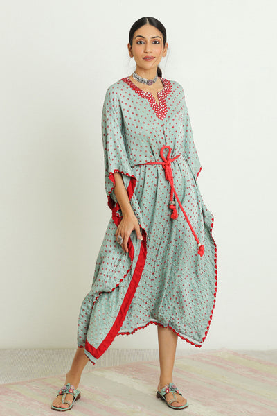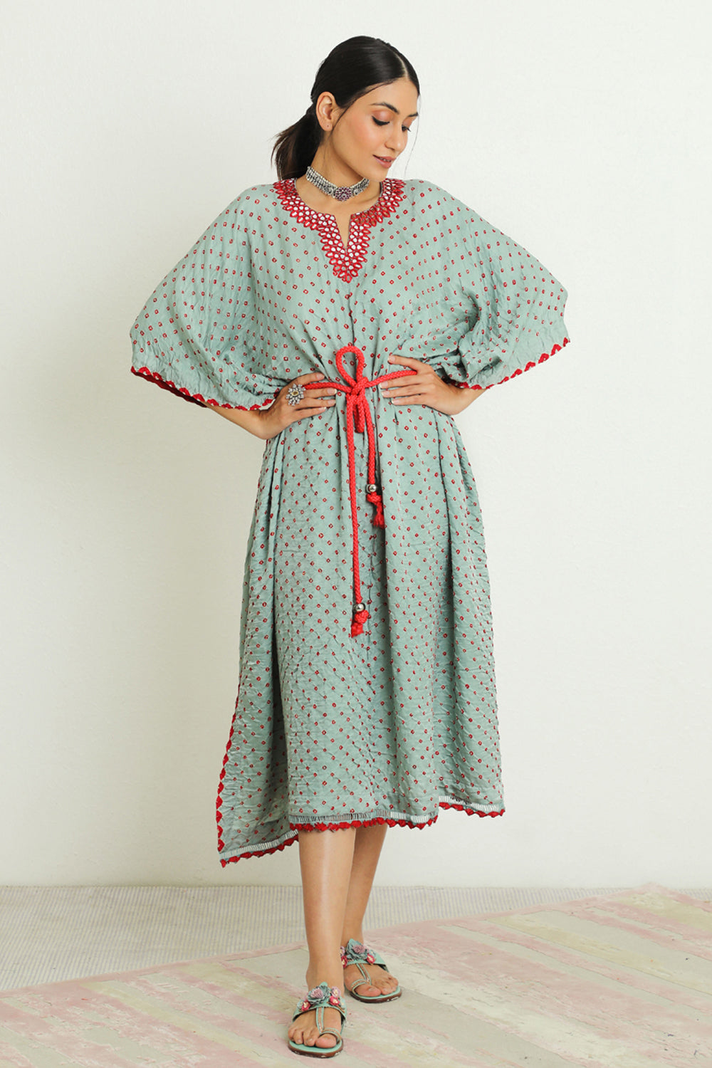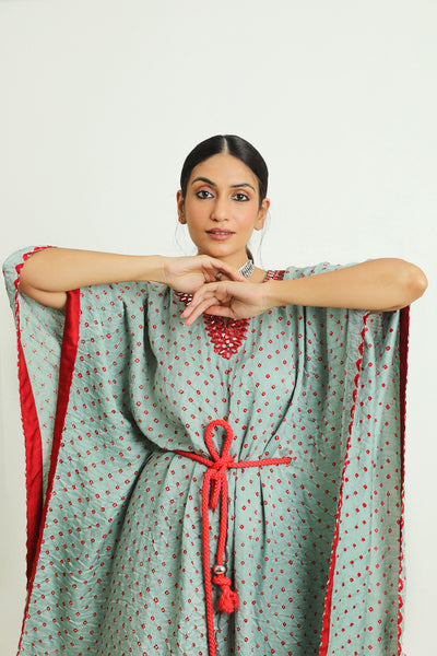 Mirrorwork Bandhani Kaftan with Rope Belt.