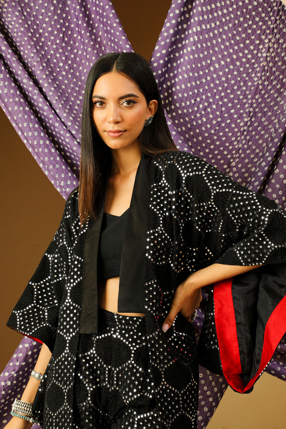 Mirrorwork Cherry Blossom Kimono Sleeves Overlay Jacket.