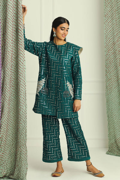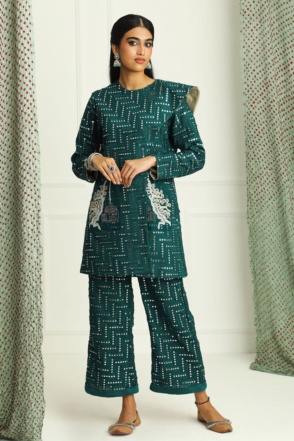 Fabric: Georgette Mirrorwork Chevron