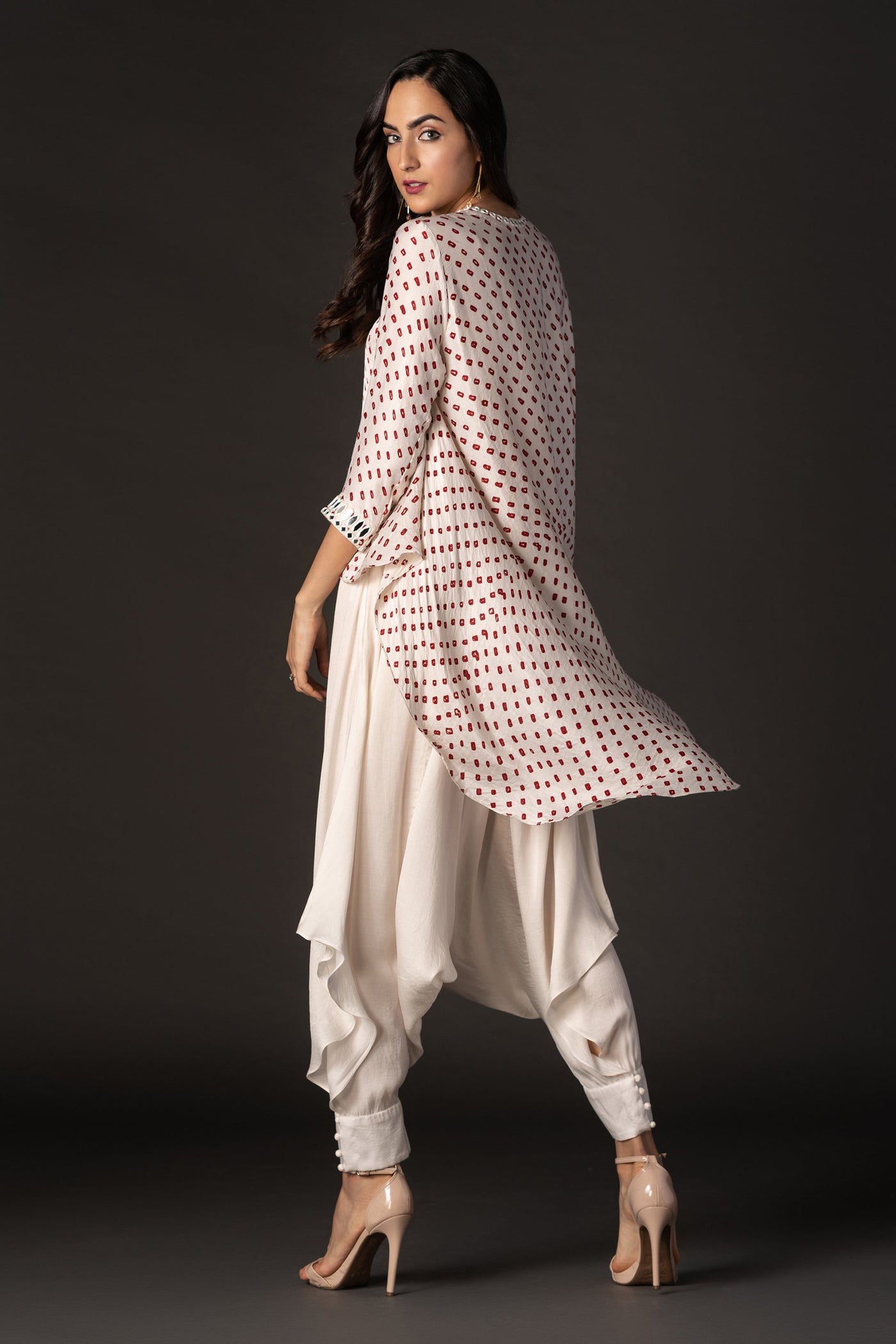 Details: Bandhani Asymmetric Top in Gajji Silk with Mirror and Beadwork