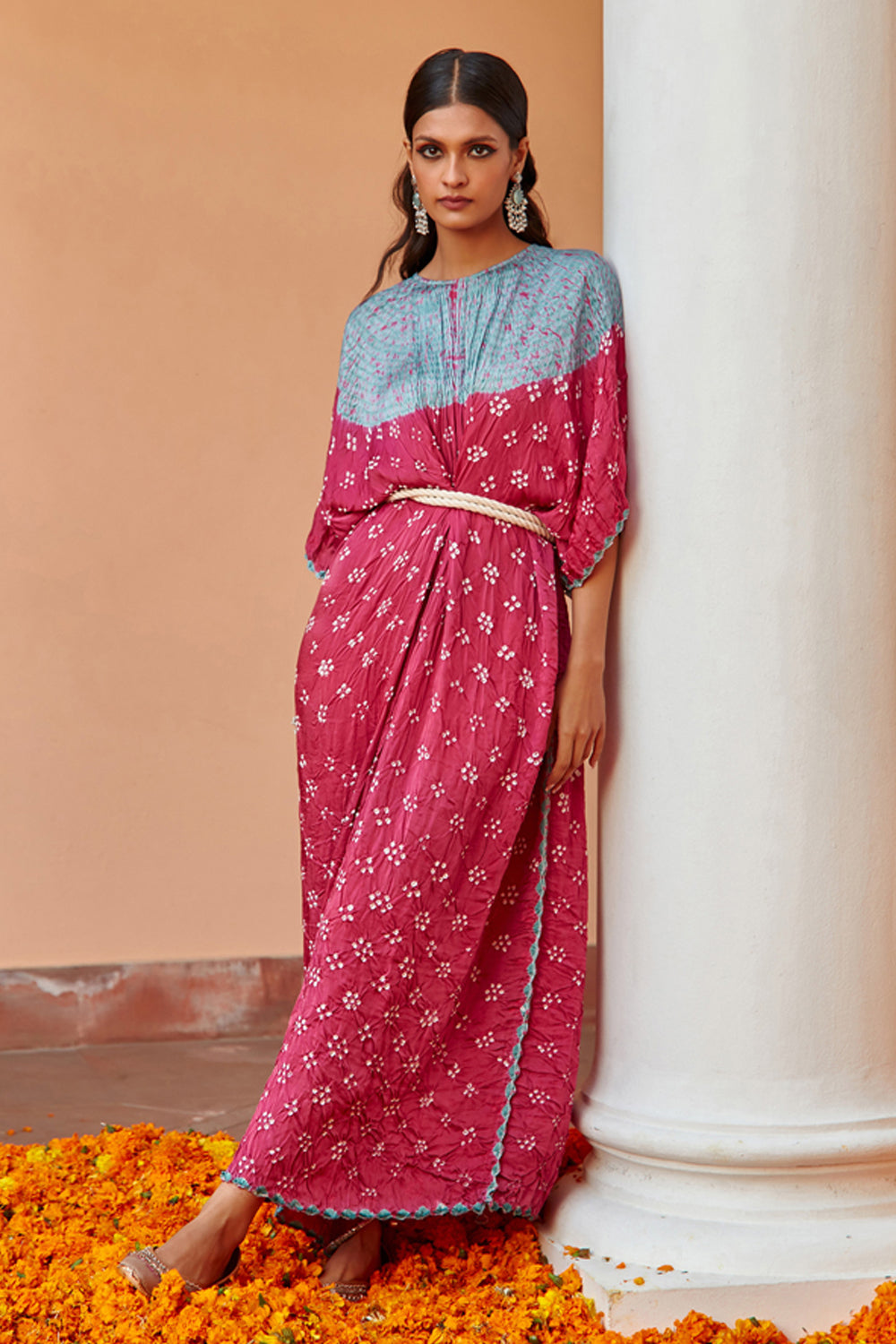 Shibori Bandhani Dress with Cinched at the Front with Rope Belt.